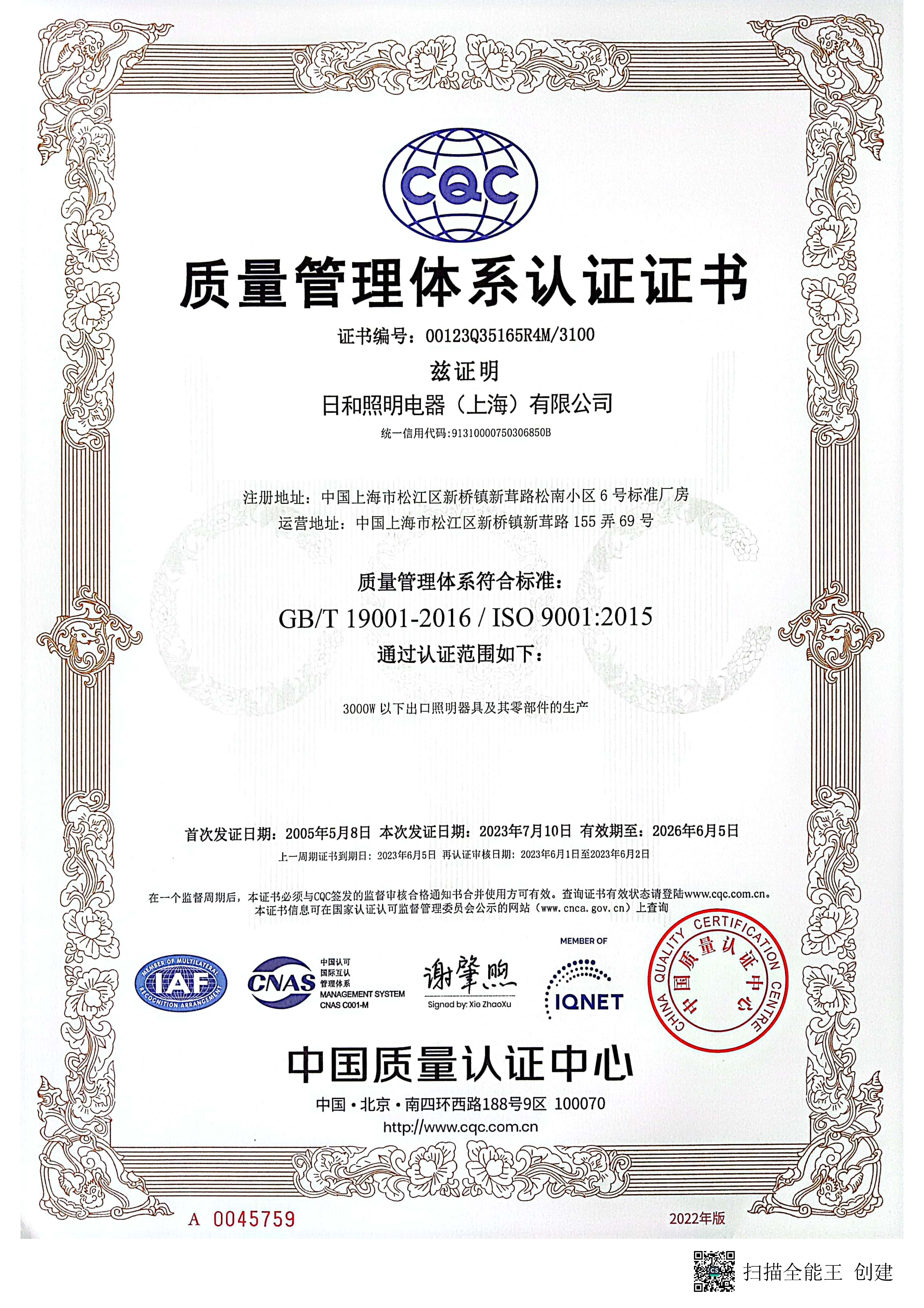 日和照明电器(上海)有限公司, 于2003年5月15日成立。公司占地面积4324平方米;建筑面积2023平方米。